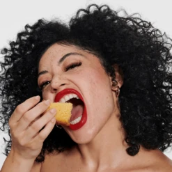 Maraschino Cherry – a neon-red in the tube that looks like a vibrant, classic red on pink lips. It was made with lighter skin tones in mind.
