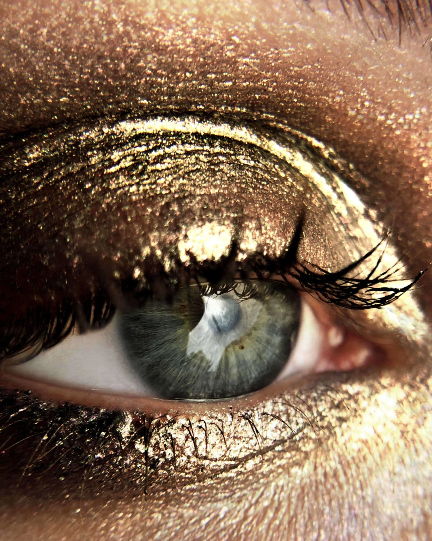Serpens: Rich, molten, dark gold shimmer eyeshadow in a black gelée base