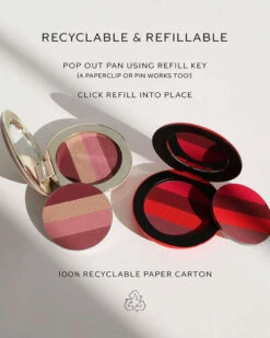 Why we love it: Clean, long-lasting, customizable color. This luxurious lip palette contains four vibrant shades packed with 16.5% cold-pressed cherry oil and firming peptides that leave lips nourished and plumped. Ultra-flattering rouge shades – in fuchsia, brick, tomato red and warm dusty rose – can be worn alone or custom mixed for endless possibilities. Matte suede texture made with 100% natural pigments and petrolatum-free base conditions lips. No silicones, no parabens, no PEGs, no phthalates, no synthetic fragrancess. Vegan & no animal testing. Â