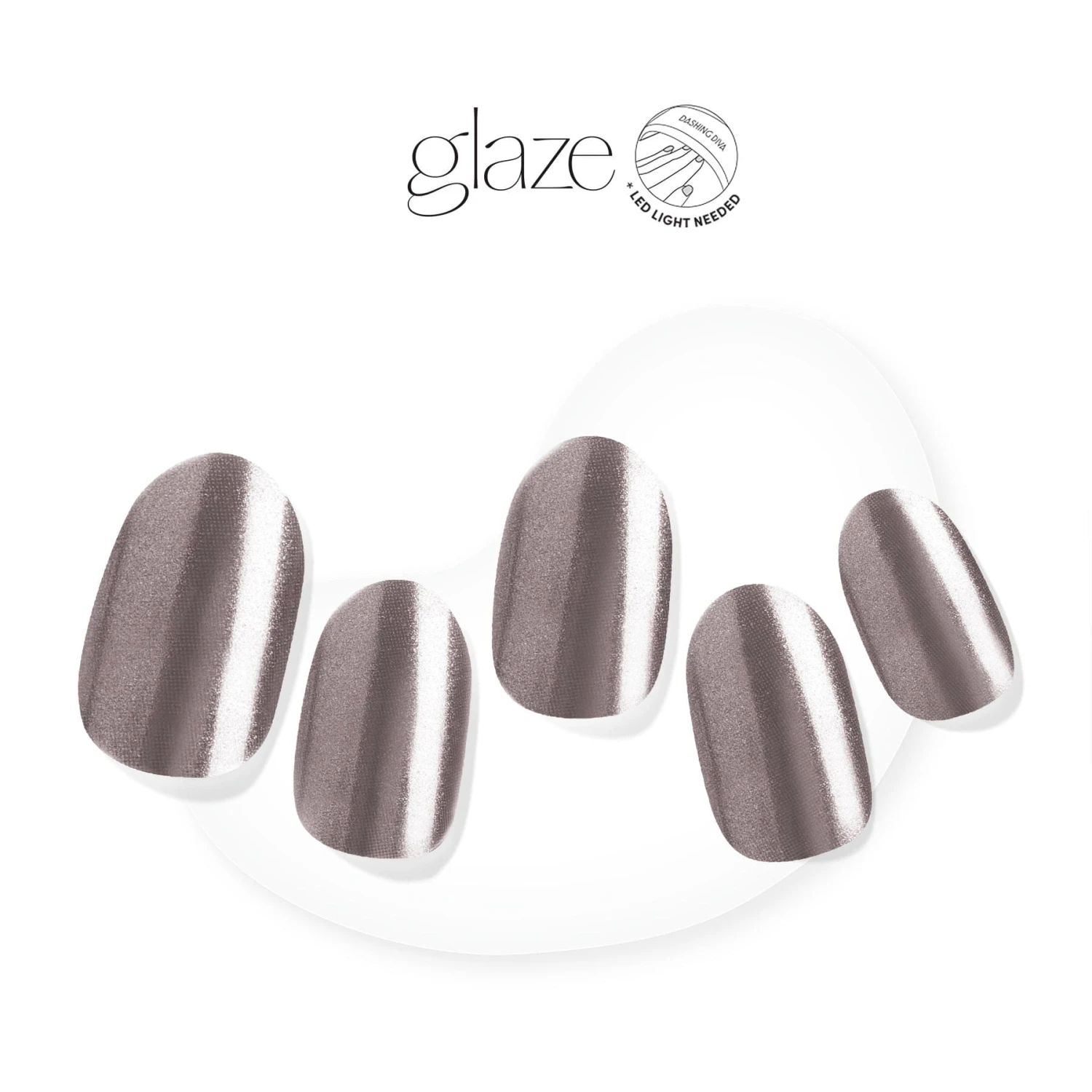 Semi-cured ultra dark brown gel nail strips with mega volume & a shimmery chrome finish.