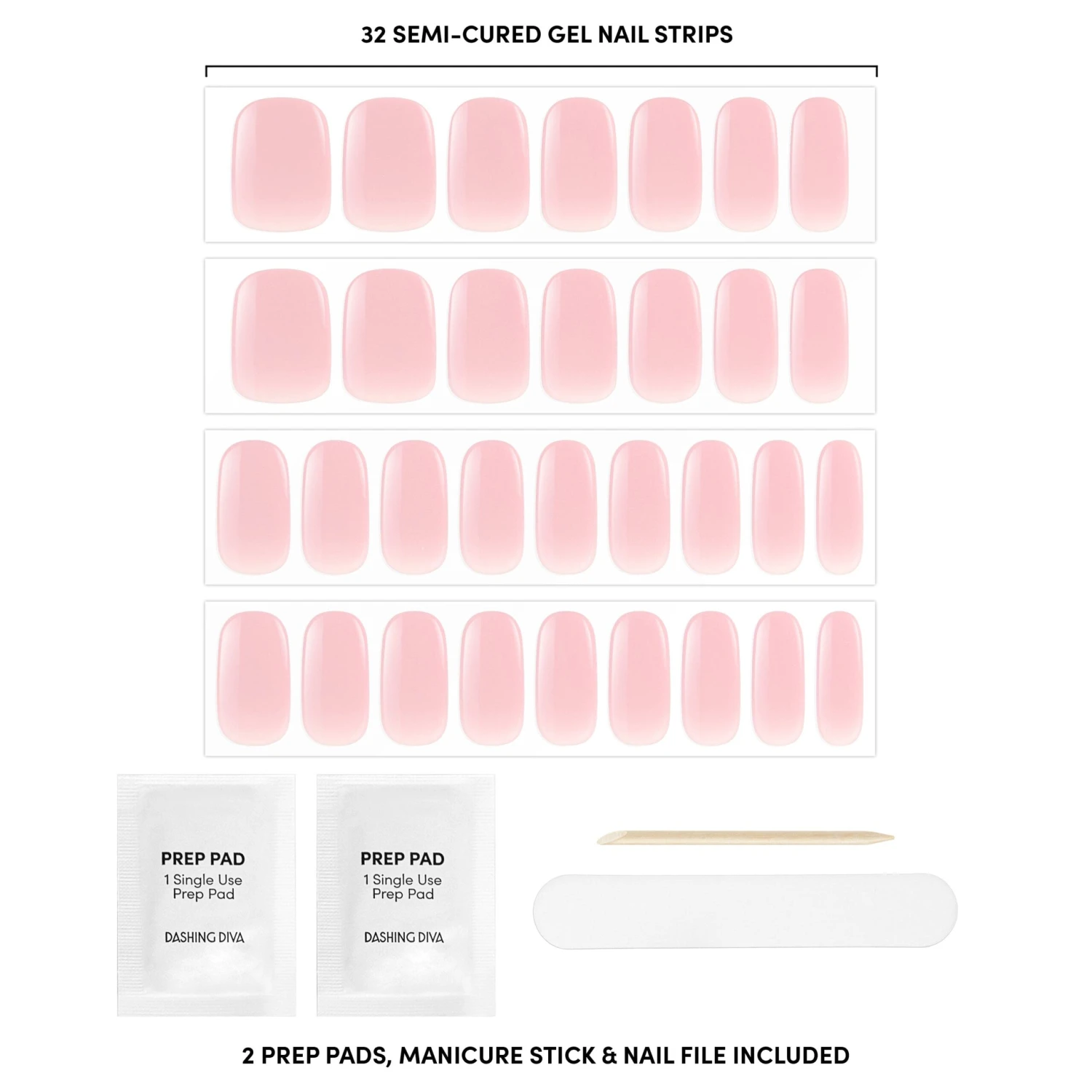 Semi-cured dusty pink gel nail strips with mega volume & maximum shine.