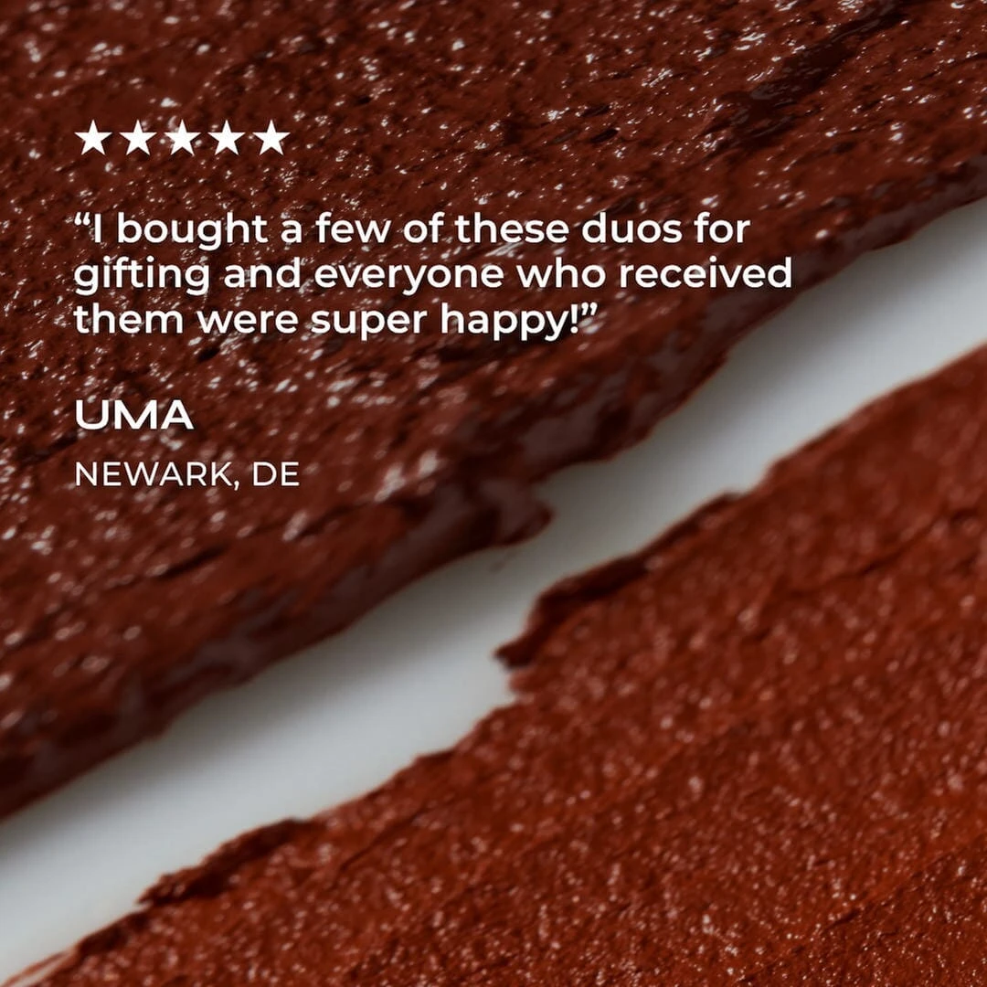 The product is: Set of two multi-use crayons for eyes, lips, and cheeks. Totally plastic free!