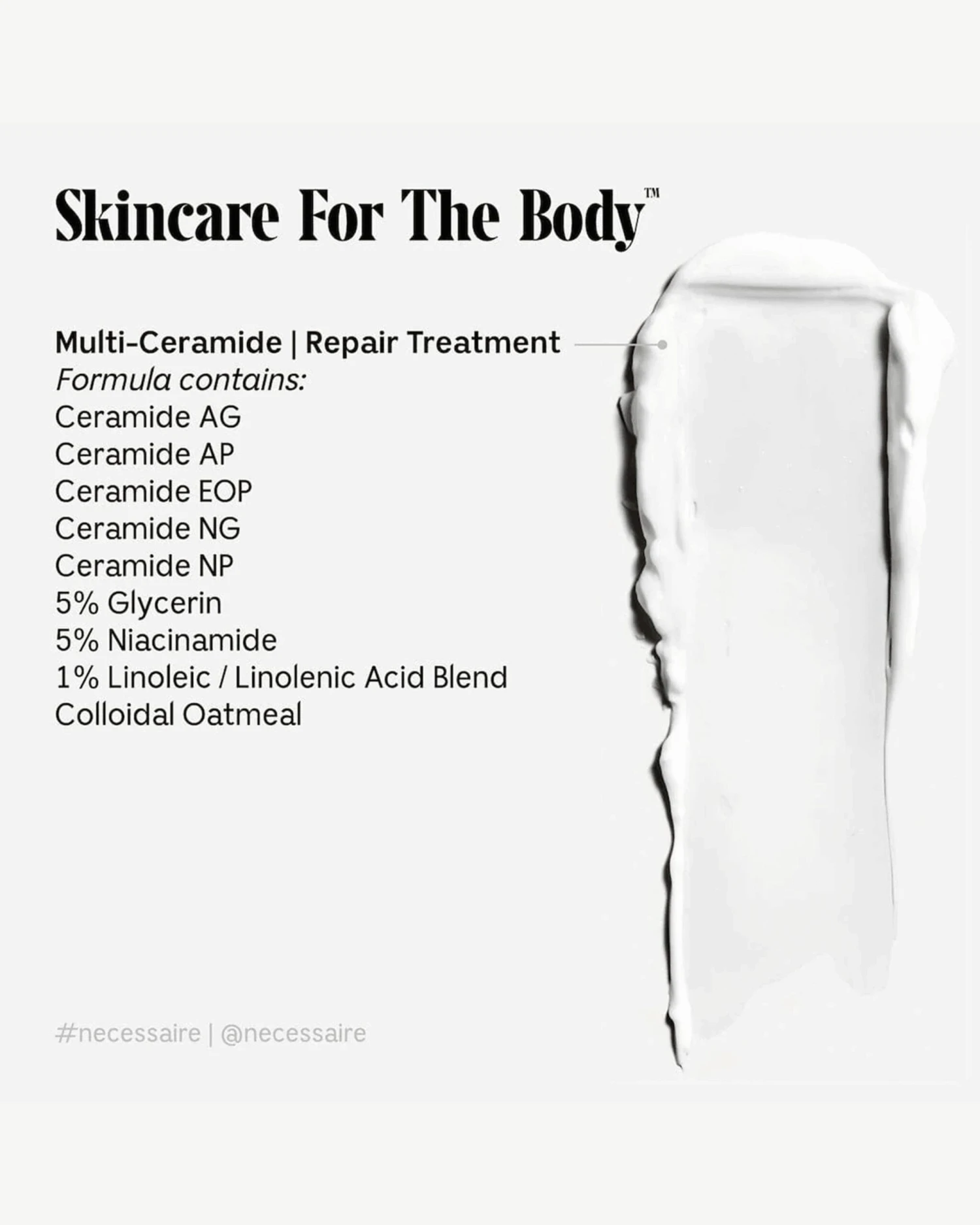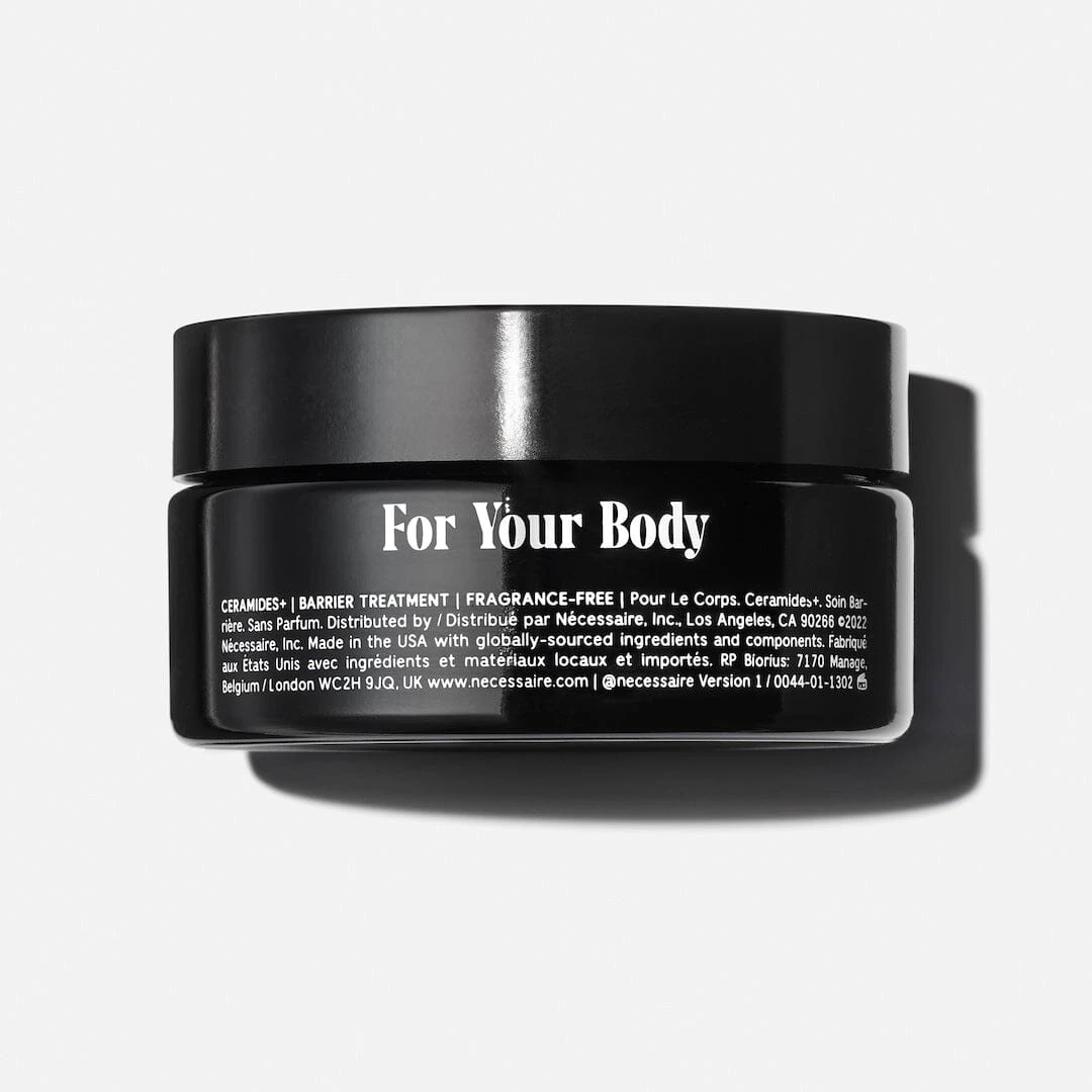 Why we love it: Nécessaire The Body Cream is a concentrated barrier treatment cream for mature, dry skin. 5 Ceramides, 5% Niacinamide, + 1% Linoleic | Linolenic Acids help reverse signs of age, heal dryness and repair the skin barrier. pH-Optimized. No Silicones. No Phthalates. No Parabens. No PEGs. Fragrance-Free. Hypoallergenic. Dermatologist-Tested. Non-Comedogenic.Â