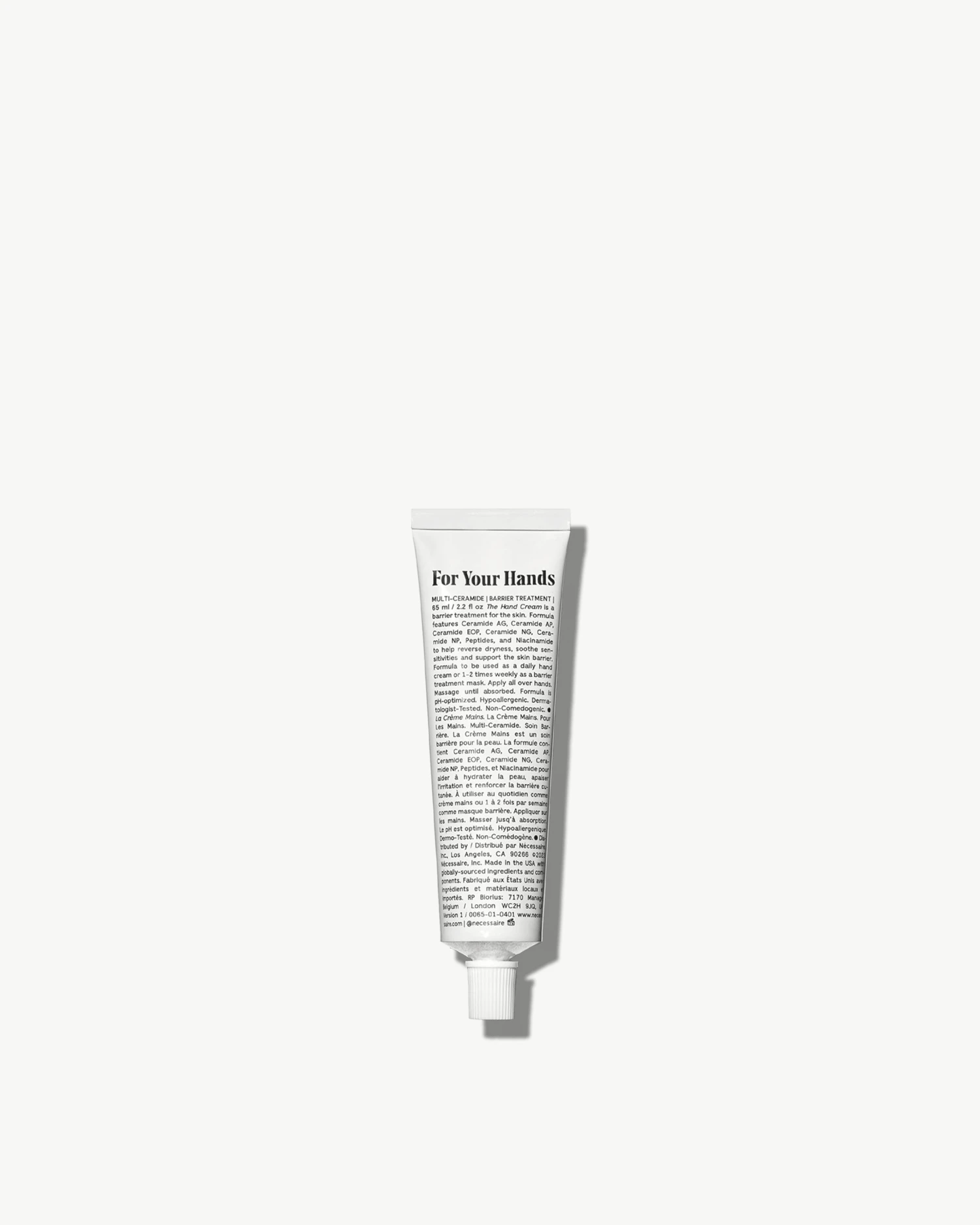 All-in-one barrier treatment for your best hands yet. 5 Ceramides, 5 Peptides, Niacinamide and Marula Butter / Marula Oil to reverse dryness, treat loss of volume and soften brittle cuticles. Fast-Absorbing. Non-Greasy. Dermatologist-Tested. Hypoallergenic. Non-Comedogenic. Fragrance-Free.