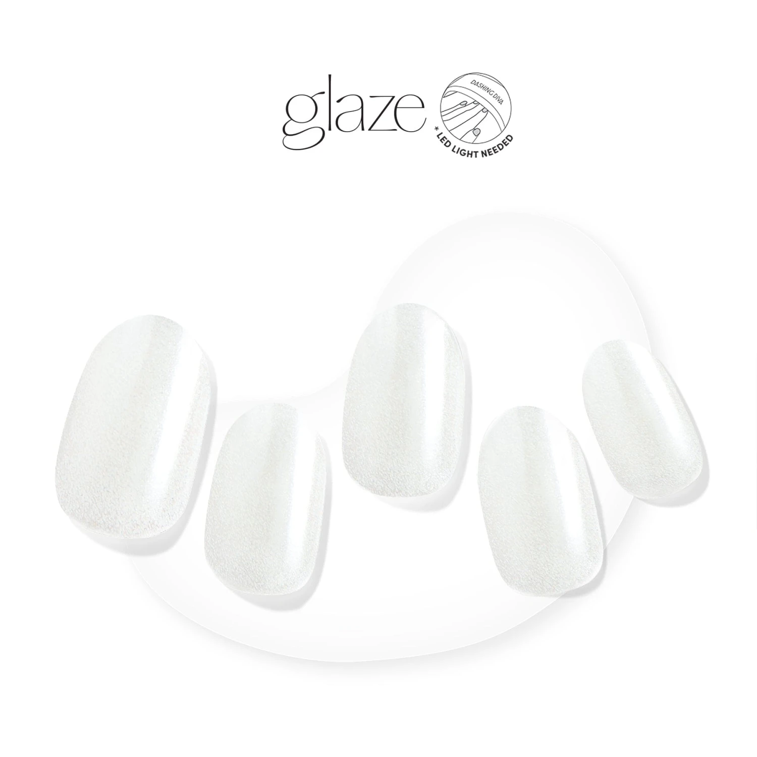 Semi-cured pearly white gel nail strips featuring a shimmery chrome finish with mega volume & maximum shine.