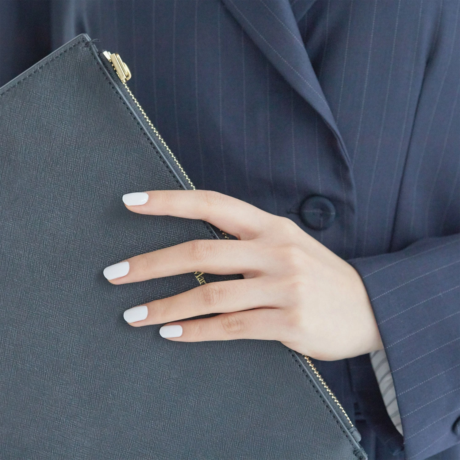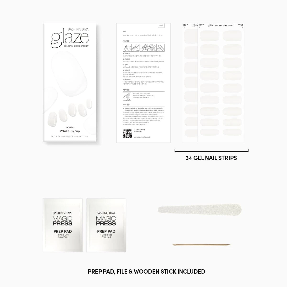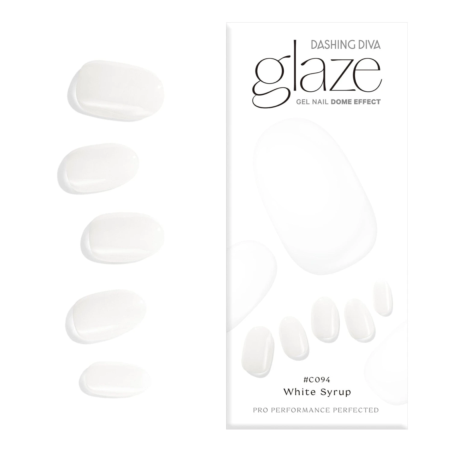 Semi-cured true white gel nail strips with mega volume & maximum shine.